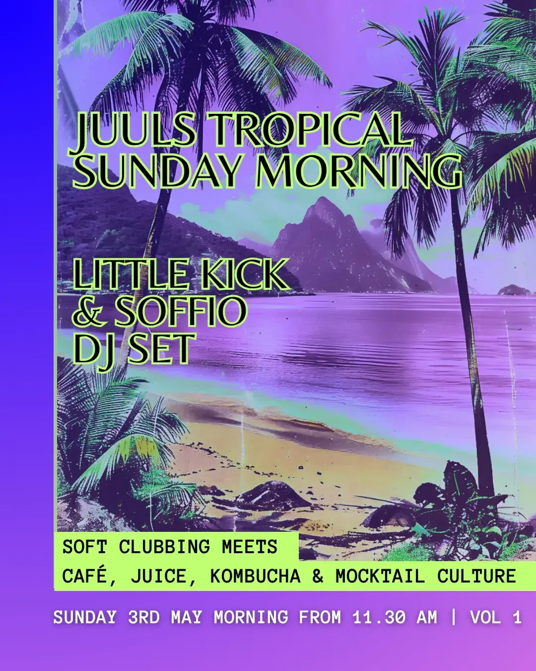 Malta's Soft Clubbing Era starts NOW at Juuls. Take note: Sunday May 3rd, 11:30am 😎 roll out of bed and come straight to us. Fresh beats, zero alcohol, full vibes. Brand new healthy & alcohol-free menu: coffee, juice, kombucha & mocktails🧋🧉 Our resident Djs Little Kick & Soffio on the decks