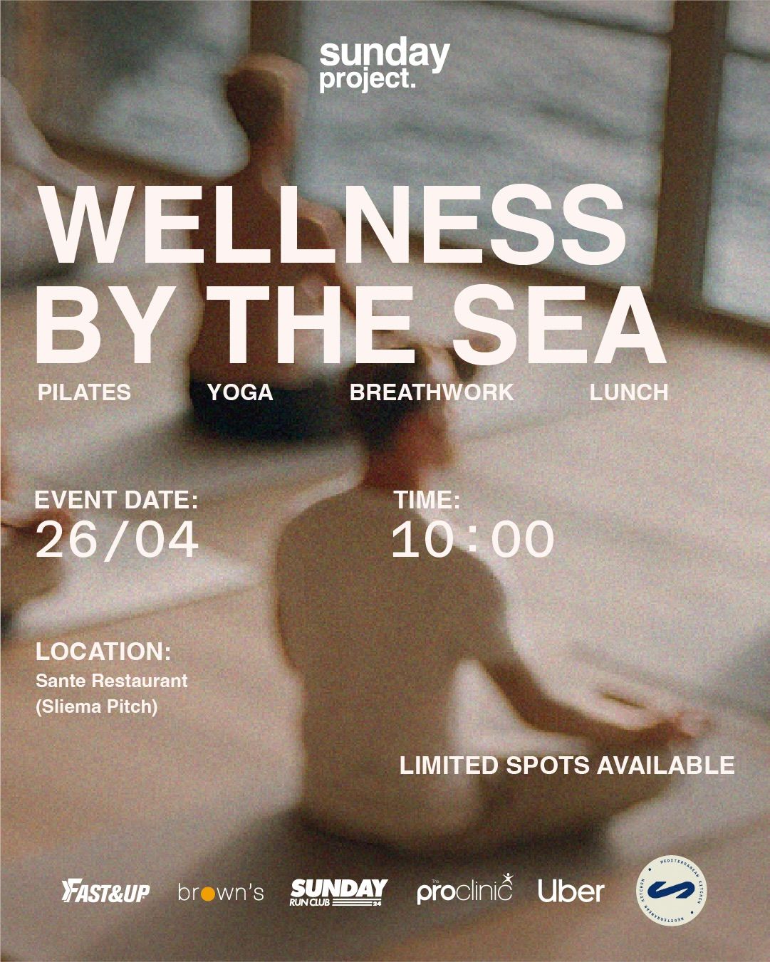 The morning will begin with a 45-minute pilates session led by Isabella Bonello, followed by a 30-minute yoga flow and a 10-minute breathwork session led by Becky Hammett. After the wellness sessions, guests will come together for a relaxed lunch experience hosted by Sante, creating space to unwind, connect, and enjoy a thoughtful menu by the sea.